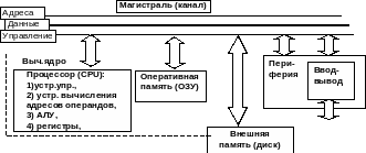 Термином периферийное устройство (ПУ) будем называть устройства самой разнообразной природы, которые являются внешними по отношению к вычислительному ядру (процессор + память) и которые по скорости своей работы не согласованы с процессором. (Таким естественным образом согласована по скорости работы с процессором основная память. Для лучшего согласования используются дополнительные структурные элементы, такие как кэш-память, дополнительные локальные шины для доступа к памяти и др. – см. более подробно в последующих разделах.). Как правило, периферийные устройства «работают» медленнее процессора, т.е. передают или принимают данные медленнее, чем это в состоянии делать процессор, обмениваясь по магистрали (например, с памятью).