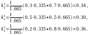 і значення коефіцієнтів компетентності першого наближення за формулою (7.6)