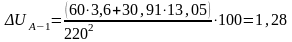 Загальна формула для втрати напруги від центра живлення до К-ї підстанції, в %, має вигляд: