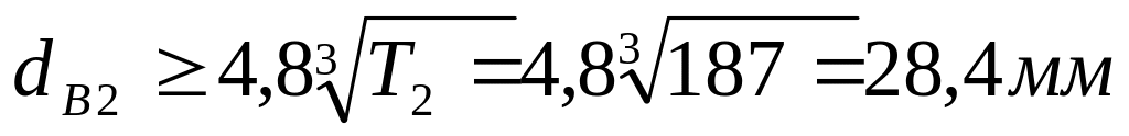 Диаметр выходного конца ведомого вала при Т2= 187Н·м