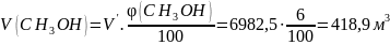 1.5 Содержание метанола в колонне составляет 6%,соответственно: