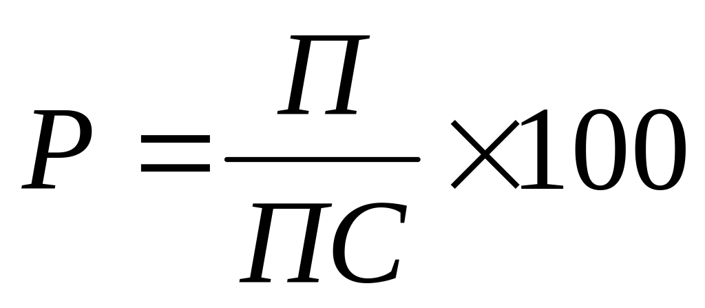 Рентабельность продаж, Рп в % рассчитывается по формуле: