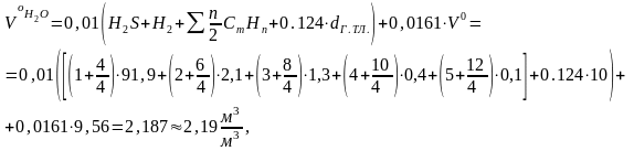 Объем водяных паров VH2O = VoH2O + 0,0161(αср-1)*Vо |