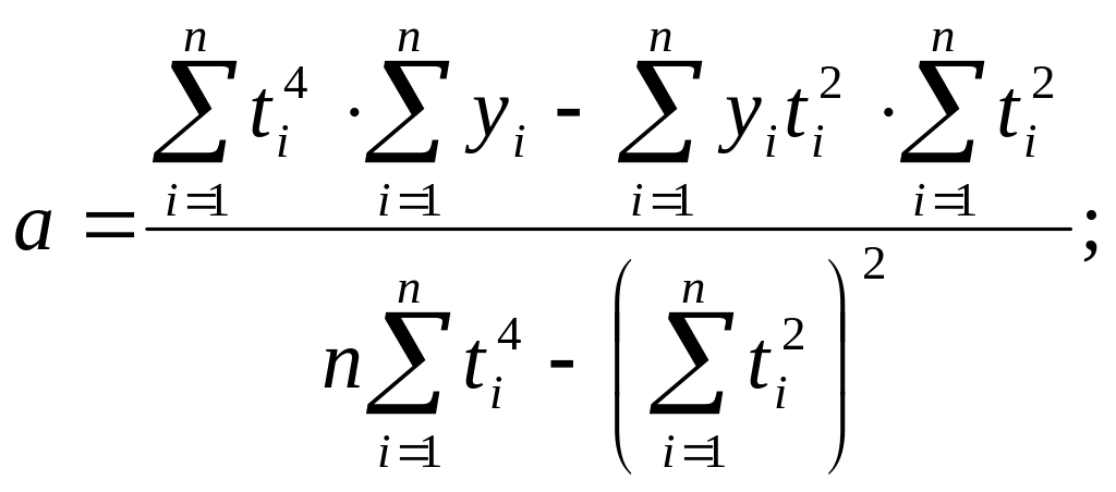 a=43,84; b=4,06; c=-0,08; y=43,84+4,06·t-0,08·t².