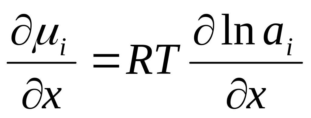 Термодинамически условию равновесия (при Р, Т=const) отвечает постоянство изобарно-изотермического, а значит и химических потенциалов во всех частях системы. Внешнее воздействие может вывести систему из состояния равновесия. Это означает, что в разных частях системы значения химического потенциала будут разными, т.е. появится градиент химического потенциала.