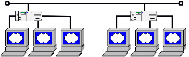 На данный момент топология типа звезда является самой распространенной при построении ЛВС.