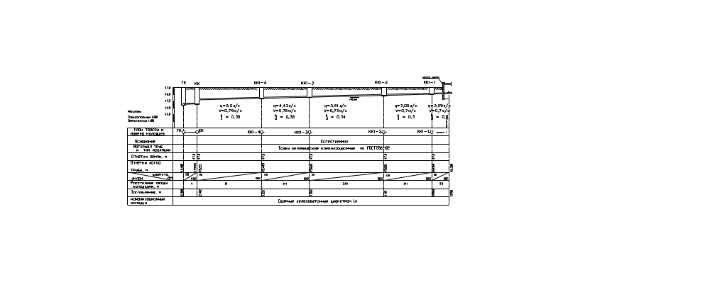 Уклон на участке КК - ГК принимается равным уклону на предыдущем участке.