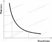 Безработица и инфляция находятся в определенной количественной зависимости Профессор Лондонской экономической школы Апбан Филлипс в конце 1950-х годов установил следующую закономерность. Чем ниже уровень инфляции, тем выше уровень безработицы. И это объяснимо. Безработица сказывается на оплате труда. С повышением уровня безработицы уменьшаются доходы и снижается покупательная способность населения. В итоге уровень инфляции снижается.Этот процесс наглядно представлен на кривой Филлипса