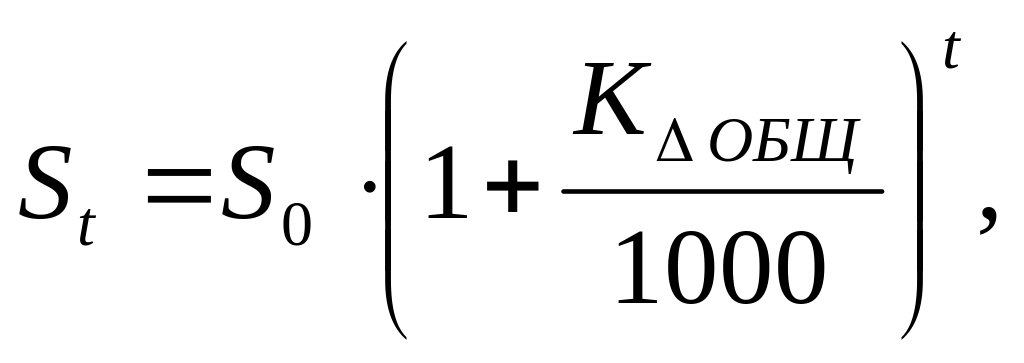 где S0 – численность населения на начало планируемого периода; t – число лет, на которые осуществляется прогноз.
