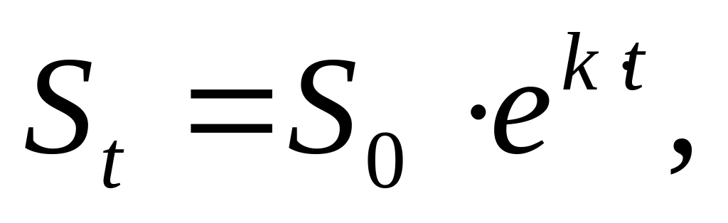где S0 – численность населения на начало планируемого периода; е – основание натурального логарифма; k – коэффициент естественного прироста в долях единицы; t – число лет, на которые осуществляется прогноз.