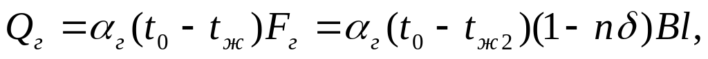 Тепловой поток Qr, Вт, с гладкой поверхности Fr стенки в промежутках между ребрами