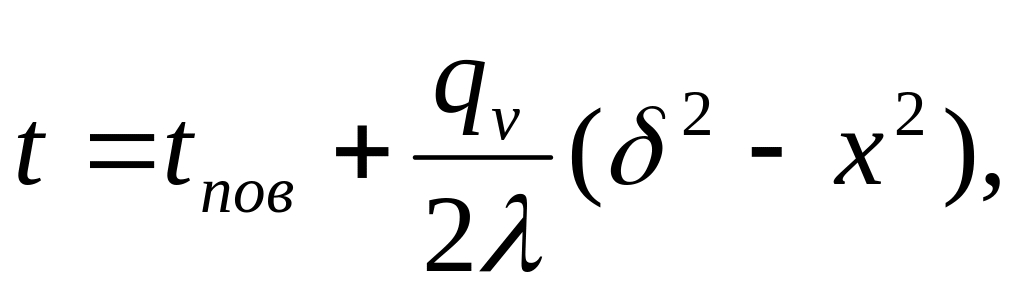 Рис. 3.1. Температурный график в пластине с учетом внутренних источников теплоты