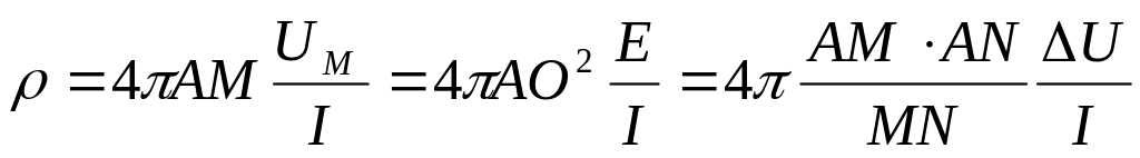 Кажущееся сопротивление: ρК = K·ΔU/I [Омм], где K – коэффициент зонда.