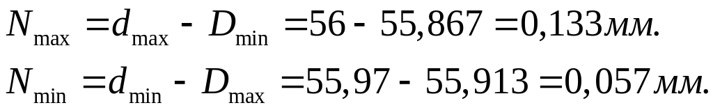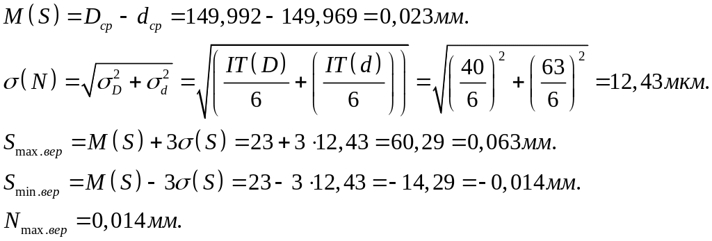 Принимаем нормальный закон распределения случайных погрешностей и рассчитываем предельные значения вероятных натягов.