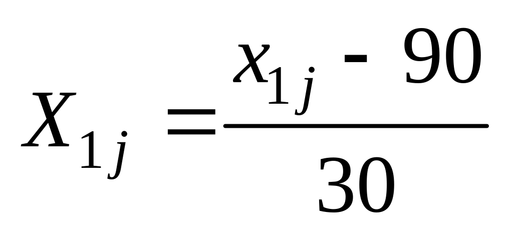 Формулы перевода натуральных x1 в нормированные X1 и обратно |