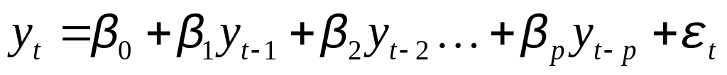 Авторегрессионная модель p-го порядка (AR(p)) – это динамическая регрессионная модель, в которой в качестве объясняющих переменных используются значения зависимой переменной за p предшествующих периодов.