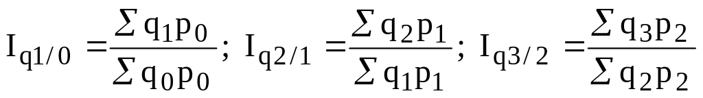 Базисный агрегатный индекс физического объема продукции может быть получен как произведение цепных агрегатных индексов при постоянных соизмерителях