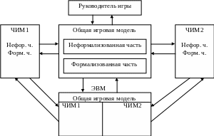 Неформализованная часть – некоторый сценарий игры, где руководитель игры определяет цели и задачи игры с возможным делением ее на этапы, и вообще анализирует игру по всем признакам. У руководителя должны существовать помощники.