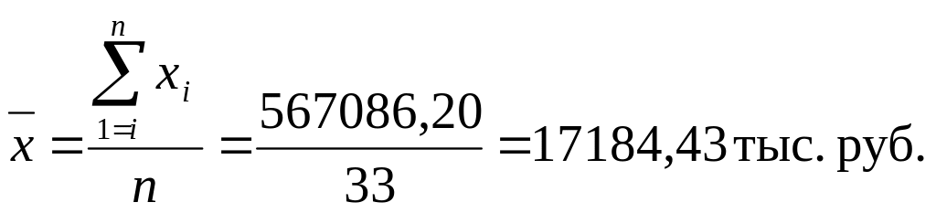Причина расхождения средних величин, рассчитанных по формулам (8) и (5), заключается в том, что по формуле (8) средняя определяется по фактическим значениям исследуемого признака для всех 33-х предприятий, а по формуле (5) средняя вычисляется для интервального ряда, когда в качестве значений признака берутся середины интервалов и, следовательно, значение средней будет менее точным (за исключением случая равномерного распределения значений признака внутри каждой группы).