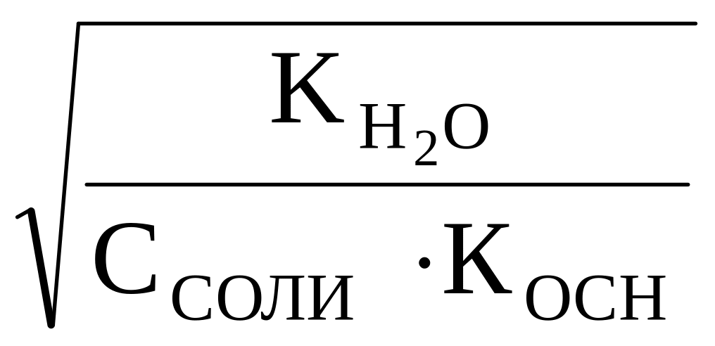 где РКОСН – силовой показатель основания: РКОСН = -lg КОСН . Степень гидролиза по аниону и рН такой соли рассчитываются по следующим формулам ([OH] в моль/л):