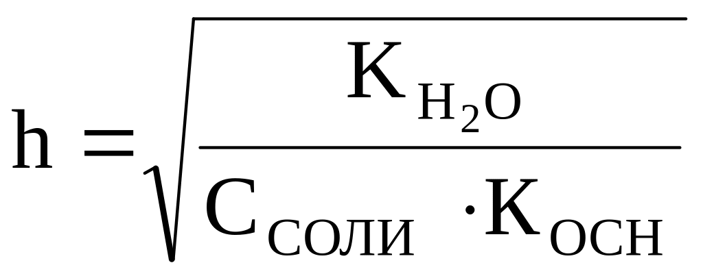 Исходя из уравнения константы диссоциации слабой кислоты (или основания) и ионного произведения воды, можно вывести формулу степени гидролиза соли h: