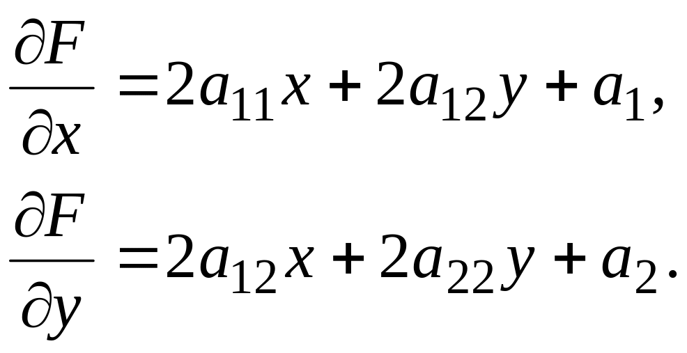 Лемма 7.2. Для того чтобы начало координат было центром симметрии кривой второго порядка, необходимо и достаточно, чтобы коэффициенты при первых степенях переменных в ее уравнении равнялись нулю.