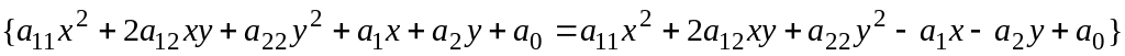 Подставляем выражение переменных по формулам (7.9) в исходное уравнение. При этом квадратичная часть переходит в известный нам канонический вид, свободный член не меняется, а чтобы узнать, как изменится линейная часть, следует непосредственно подставить формулы (7.9) в уравнение, раскрыть скобки и привести подобные.