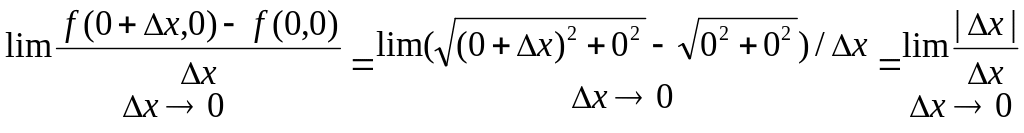 Приклад: z=(х2+у2)1/2, ф-я z неперервна в точці (0,0), але недиференцируєма в цій точці: границі не існує, тому, не існує і похідної fx’(0,0), аналогічно не існує fy’(0,0), тому за теоремою 2 ф-я z недиференцируєма.