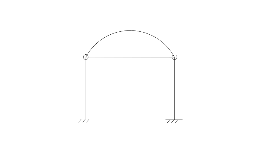 4. 3-х шарнирная рама. Ригель и стойки переменного сечения. Колонны шарнирно опираются на фундамент. В середине ригеля шарнир.