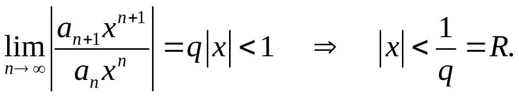 Для отыскания радиуса сходимости , характеризующего область сходимости степенного ряда, можно поступать с рядом, как с числовым – применять к нему признаки Даламбера, Коши и другие.