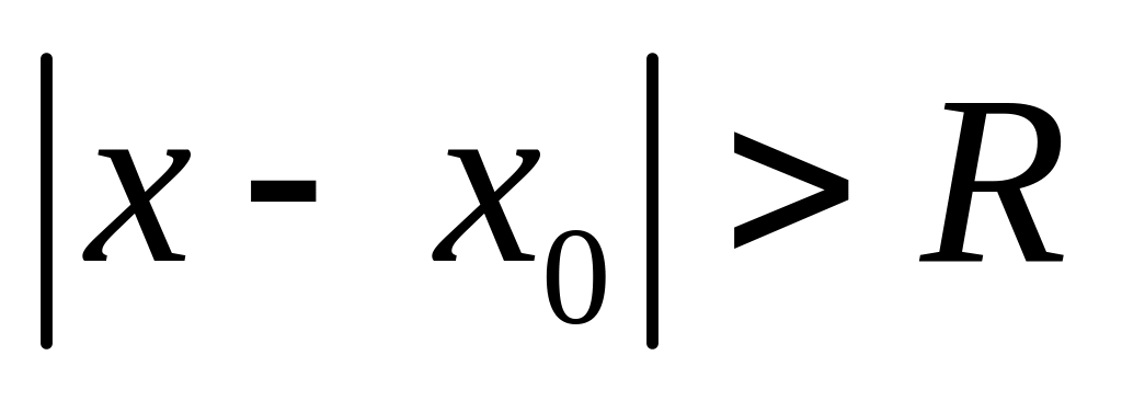 Определение. Число R называется радиусом сходимости степенного ряда , если для всякого ряд сходится, а для всякого ряд расходится. Интервал (-R, R) называют интервалом сходимости, начало координат – центр интервала сходимости.