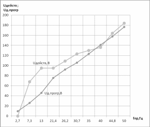 Uд.прогр = (Uд.max/255)*(64+191*( fпр/50)), где Uд.max = 176,В