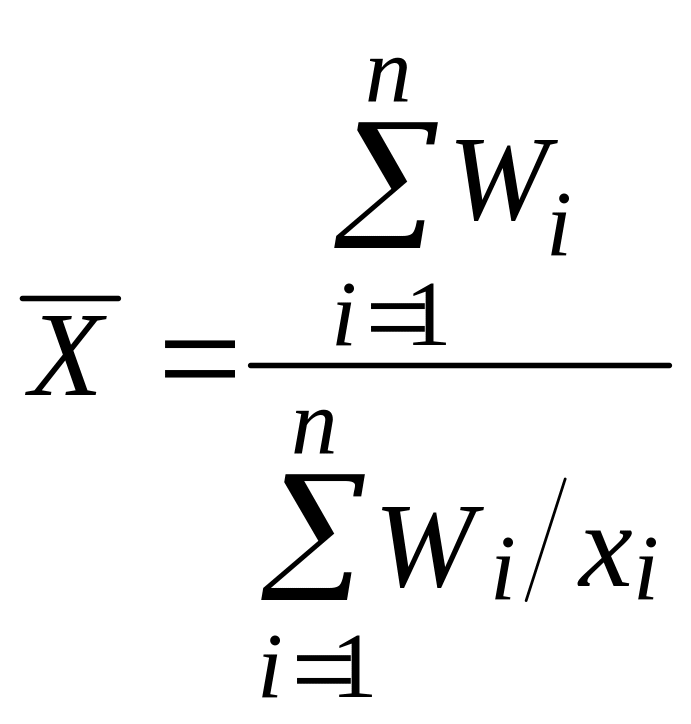 Средняя гармоническая используется в тех случаях, когда нет возможности подсчитать частоты mi отдельных значений признака (отсутствуют соответствующие данные). Достаточно часто такое встречается в статистике торговли – например, имеются данные об общем объеме товарооборота (то есть о продаже товаров в стоимостном выражении), но нет данных о физическом объеме продажи отдельных видов товаров (то есть в натуральном выражении).