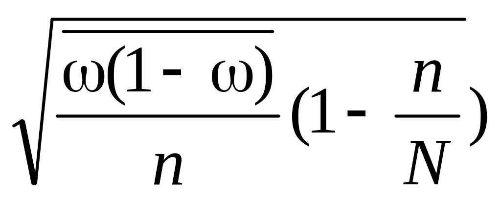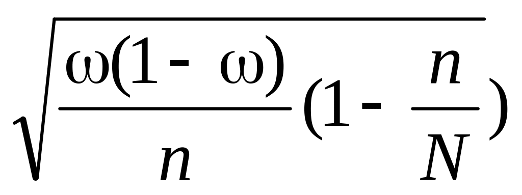 а также формулу для определения границ изменения доли признака d в генеральной совокупности, если (известна выборочная доля ω) при заданной вероятности P: