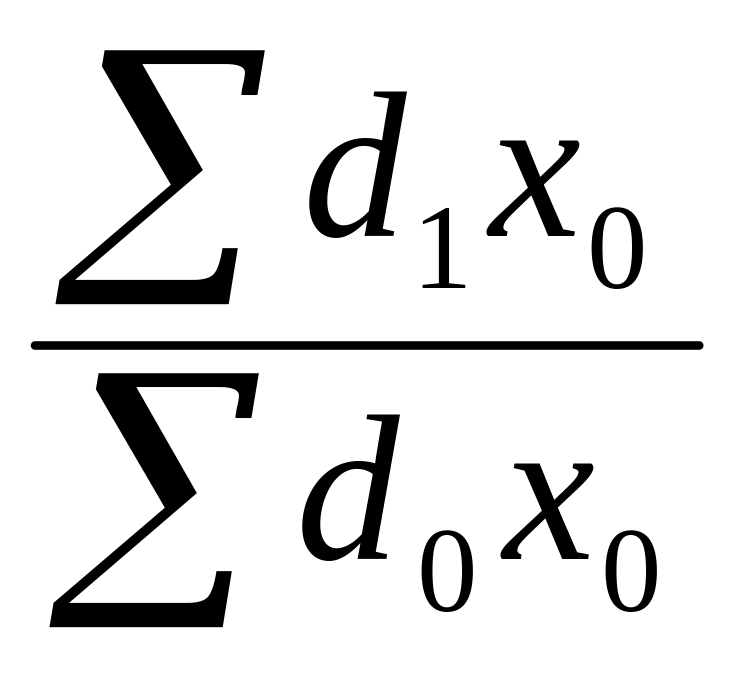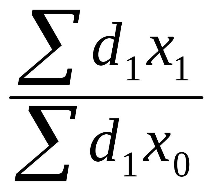 Индекс постоянного (фиксированного) состава отражает изолированное влияние первого фактора, т.е. показывает средний размер изменения изучаемого признака x у отдельных статистических единиц и рассчитывается как отношение средних взвешенных величин постоянного состава, т.е. с одними и теми же удельными весами:
