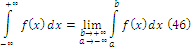 Если в формуле 44, 45 и 46 пределы существуют и конечны, то несобственные интегралы являются конечными. Если же эти пределы не существуют или конечны, то несобственные интегралы являются расходящимися.