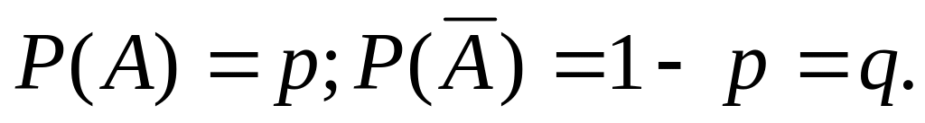 Под схемой Бернулли понимают проведение серии в n испытаний, в каждом из которых возможны два исхода: либо наступит событие А, либо не наступит, т. е. произойдет противоположное ему и при этом: