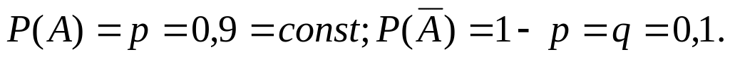 вероятность события А в каждом отдельном испытании постоянна и не меняется от испытания к испытанию:
