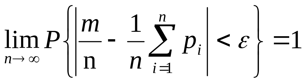 Пусть m — число наступления события А в серии n независимых ис пытаний, а — есть вероятность наступления события в i-м испытании Тогда каково бы ни было