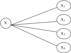 В одной модели индикаторы, обозначаемые как Х1, Х2, Х3, Х4, являются следствием, результатом действия латентной, т.е. ненаблюдаемой переменной Х. Модель измерения будет выглядеть как на рис. 1.