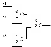 Каждый сигнал представляется алфавитом {0,1,X}. Рассмотрим элемент 2И-НЕ.