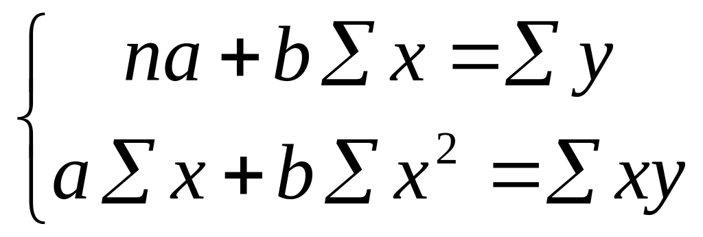 Значение коэффициентов a и b найдем из системы уравнений, полученной способом МНК: