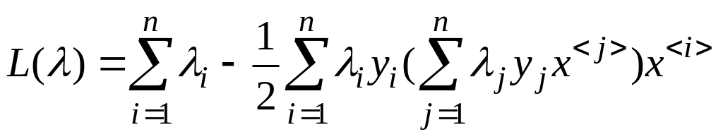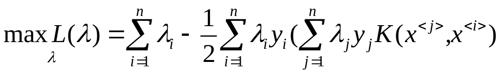 Получилась так называемая дуальная форма Лагранжиана, который зависит теперь только от множителей. Ей соответствует задача оптимизации: