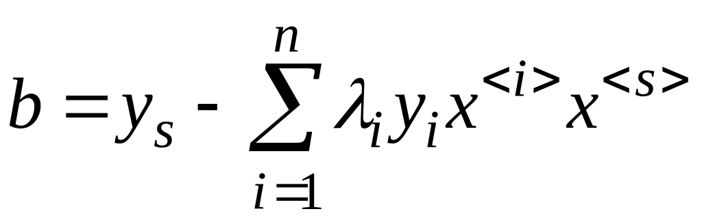 Здесь суммирование производится по опорным векторам, для которых λ больше нуля.