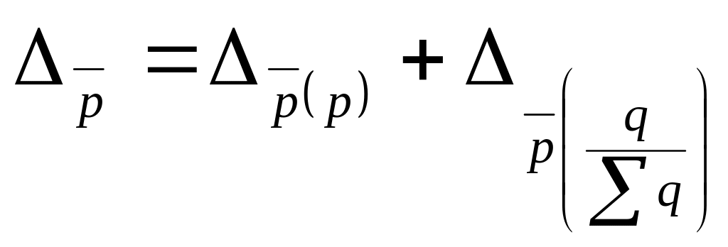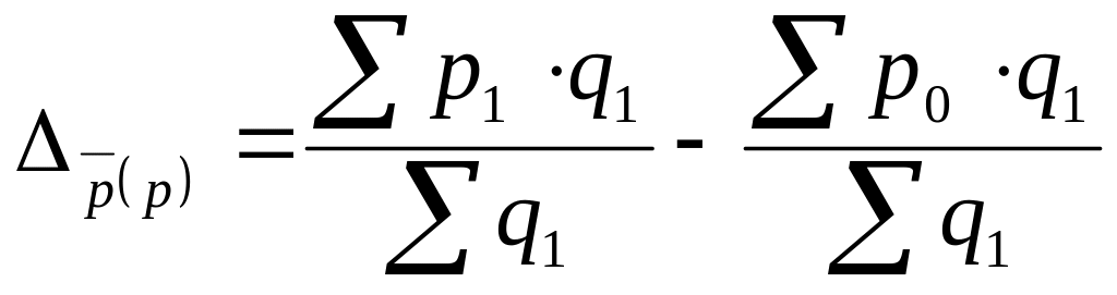 Абсолютный прирост или снижение средней цены (на сколько в абсолютном выражении выросла средняя цена по сравнению с базисным периодом) – это разность составляющий индексного отношения.