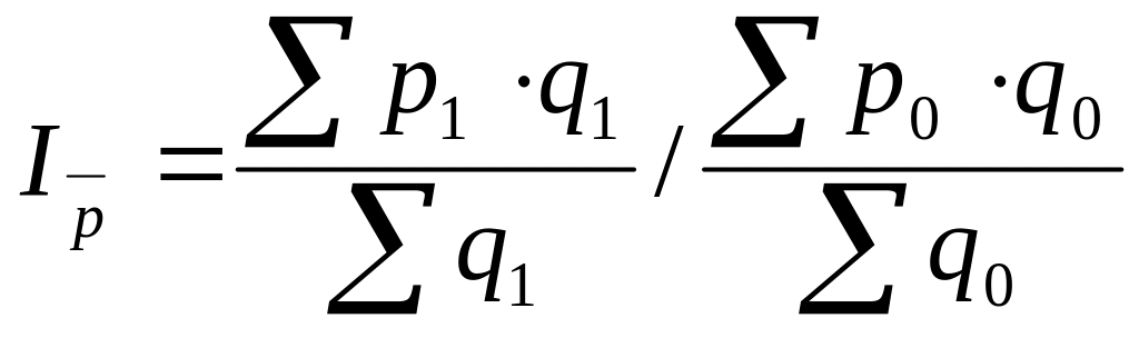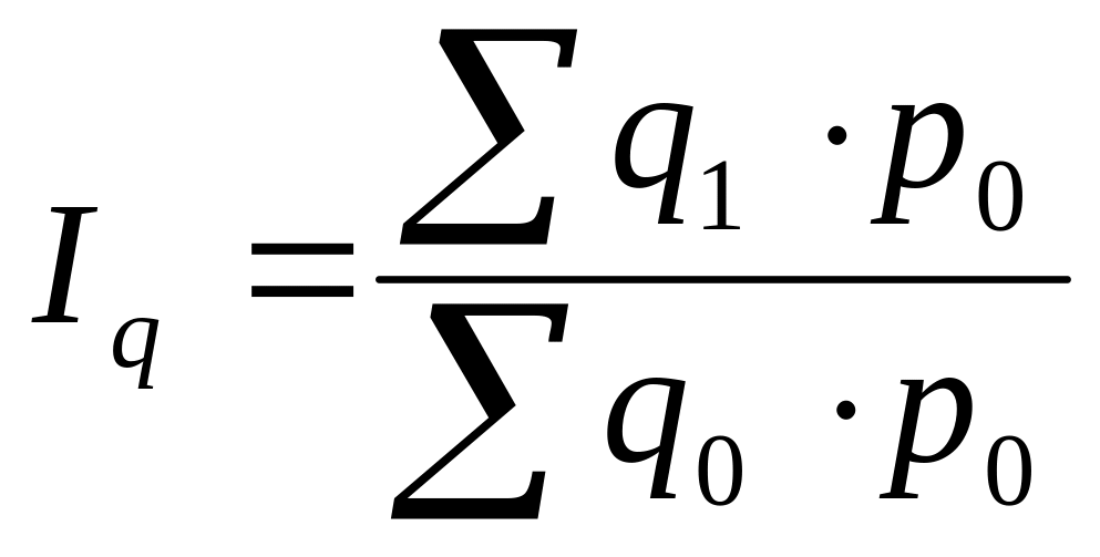 Индексируемой величиной является физический объем продаж, поэтому в числителе объем продаж берется на уровне отчетного периода, а в знаменателе – базисного, а вес (цена) остается неизменной (на уровне базисного периода). В целом числитель индекса – это экономический показатель, характеризующий фактический объем продаж в неизменных сопоставимых ценах. Знаменатель – товарооборот базисного периода (объем продаж).