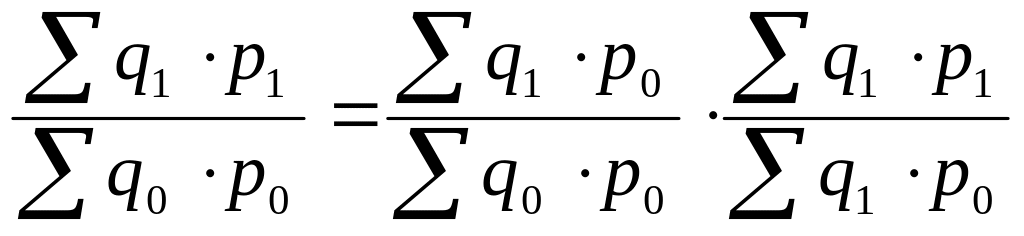 Ряд индексов, построенных по взаимосвязанным признакам, называют системой индексов. В частности индекс товарооборота равен произведению индексов физического объема и цен.