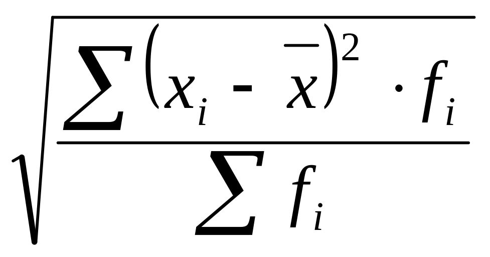 Показатель среднего квадратического отклонения - наиболее часто используемый на практик из абсолютных показателей. Характеризует на сколько в среднем отклоняются индивидуальные значения признака от типического уровня признака по совокупности.