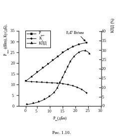 На Рис. 1.10 приведены результаты измерений СВЧ характеристик HEMT транзистора на частоте 8 ГГц в непрерывном режиме. (ширина затвора 0,15 мм, длина 0,7 мкм, расстояние затвор-сток 2 мкм).