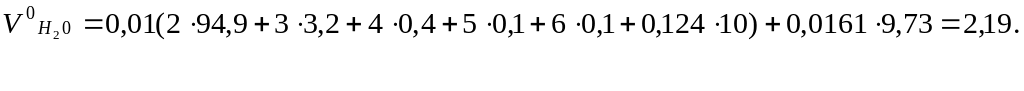 Определяем теоретический объём водяных паров V0H2O в продуктах сгорания при сжигании газа, м3/м3: